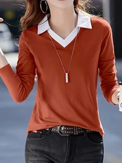 このカラーブロックVネックTシャツは、春と秋のカジュアルなスタイルに最適な長袖トップスです。シンプルながらもスタイリッシュなデザインが魅力です。