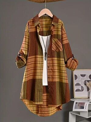 【送料無料】レディース ヴィンテージ チェック柄 長袖シャツ カジュアル ルーズフィット ミドル丈 ボタンフロント グリーン&ブラック タータンパターン 春夏 多用途 長袖 ボタンフロントシャツ 高品質の職人技 レディース Tシャツ AA0154 | monohouse