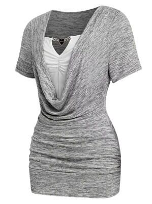 【送料無料】女性用スタイリッシュ ホルターネックチェーンディテール サマーTシャツ エレガント Vネック ライン 洗濯機可 カジュアルアウト ウェア Vネック ドレス AA0156 | monohouse