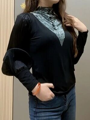 洗練されたモックネックデザインに、ラインストーンが華やかさを添えるエレガントな長袖チュニックトップ。上品なベルトディテールがアクセントになり、春秋の装いに洗練された雰囲気をプラスします。