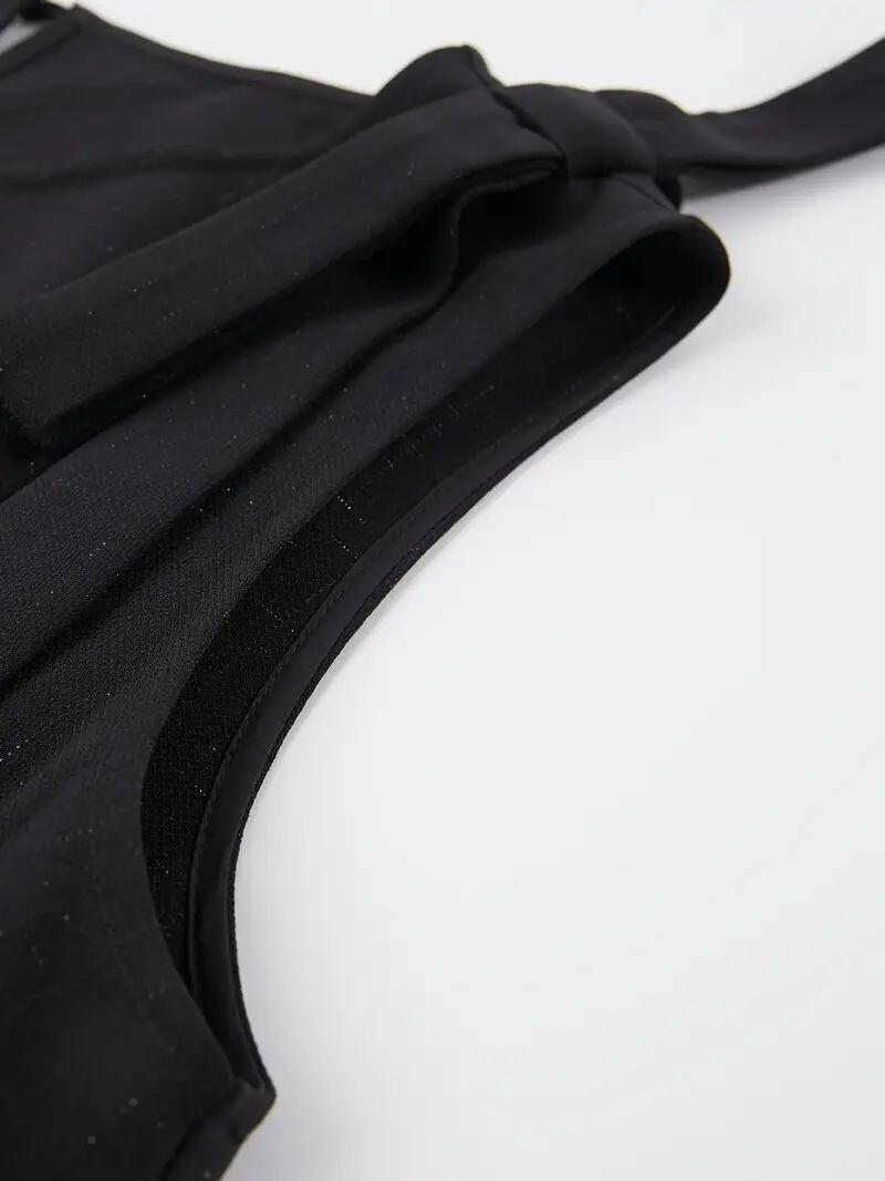 こちらは、エレガントな印象を与えるレディーススリーブレスブラックドレスです。3Dフローラルビーズとボウアップリケが散りばめられた華やかなデザインが特徴で、ミドル丈Hシルエットのストレートカットが美しいラインを演出します。洗濯機でのお手入れも可能なので、忙しい日常の中でも気軽にお召しいただけます。