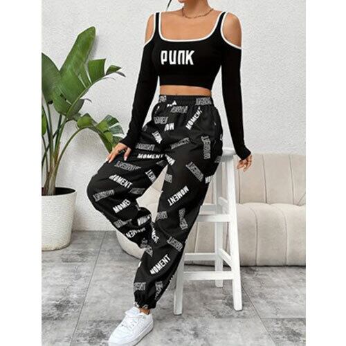 【送料無料】シックなモノグラム入りカジュアルパンツ(女性用)- 快適&スタイリッシュな伸縮性ウエストバンド付き、カジュアルな服装、デート、パーティー&ビジネスに最適 - ポリエステル、洗濯機可、ゆったり、寛大、多用途 K02359 | monohouse