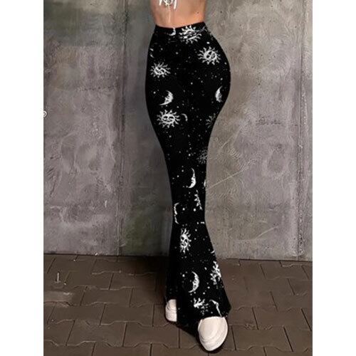 こちらは、銀河・月・日・太陽のプリントが施されたフレアレッグパンツで、個性的なデザインが魅力のアイテムです。ポリエステル素材を使用し、軽やかで動きやすく、春や秋にぴったりの快適な着心地を提供します。若々しいスタイルを演出しつつ、ウエストはフィット感のある仕様で、スタイルアップ効果も期待できます。