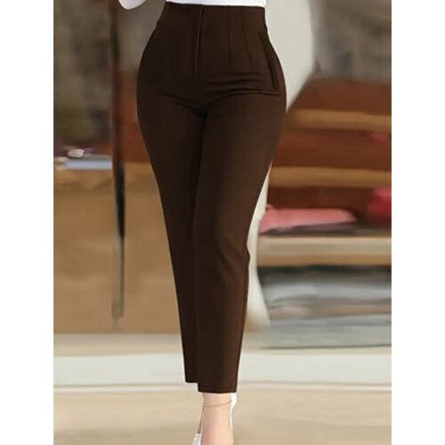 こちらは、女性用のハイウエストテーパードパンツです。無地のブラックカラーで、オフィスやカジュアルな場面にも合わせやすい万能アイテム。ディテールにこだわったデザインで、洗練された印象を演出します。ポリエステル素材を使用しており、軽やかで動きやすく、シワになりにくいのも魅力。ナアピアランスとナデザインが融合し、スタイリッシュかつ快適な着心地を実現。オールシーズン活躍する、シンプルながらも上品な一本です。