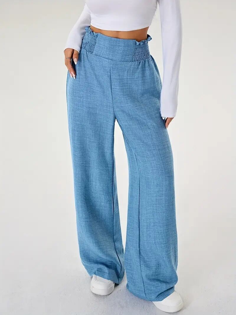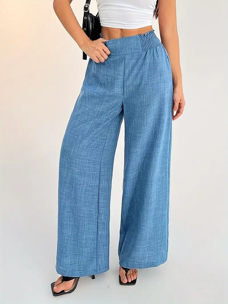 こちらは、春夏秋のシーズンにぴったりなレディースカジュアルデニムワイドレッグパンツです。ポリエステル素材を使用し、軽やかな履き心地を実現しました。伸縮性のあるウエスト設計で、快適さとスタイリッシュさを兼ね備えたアイテムです。シンプルな無地カラーで、カジュアルな日常からお出かけまで幅広くご使用いただけます!