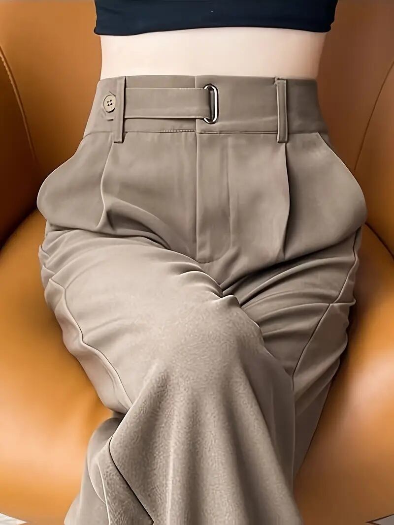 こちらは、シンプルでありながらもスタイリッシュさを感じさせる女性用ブラックハイウエストスリムフィットワイドレグパンツです。優れたフィット感を実現する高品質な素材を使用し、動きやすさと快適さを兼ね備えています。 ワイドレグのデザインにより、足元を優雅に演出し、オフィスウェアからカジュアルな日常シーンまで幅広くご利用いただけます!春、夏、秋、冬に通年使える万能アイテムです。