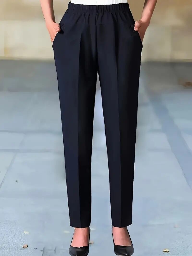 【送料無料】レディース エレガント ハイウエスト テーパードパンツ 斜めポケット付き 伸縮性ウエストバンド 無地カラー オフィス カジュアル着用 オフィスウェアパンツ テーパードトラウザー 光沢仕上げ K02423