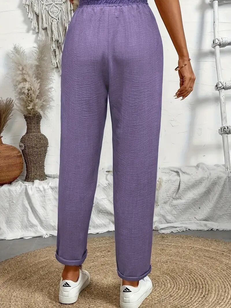 【送料無料】女性用カジュアルブラックワイドレッグパンツ、フェイクドローストリングウエスト、エラスティックウエストバンド、ポケット付き - オールシーズンコンフォートフィット、快適な服装 | リラックスフィットパンツ | テクスチャー K02435