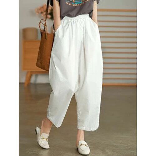こちらは女性用のホワイトウィドリーパンツで、無地のストレートレッグデザインが特徴。伸縮性のあるウエストとベルト付きで快適なフィット感を実現し、軽量で通気性の高い生地が春夏秋に最適です。滑らかな質感と構造化されたデザインがスタイリッシュな印象を与え、カジュアルからルームウェアまで幅広く活躍。洗濯機対応でお手入れも簡単、ショッピングやバケーションにも理想的な一着です。