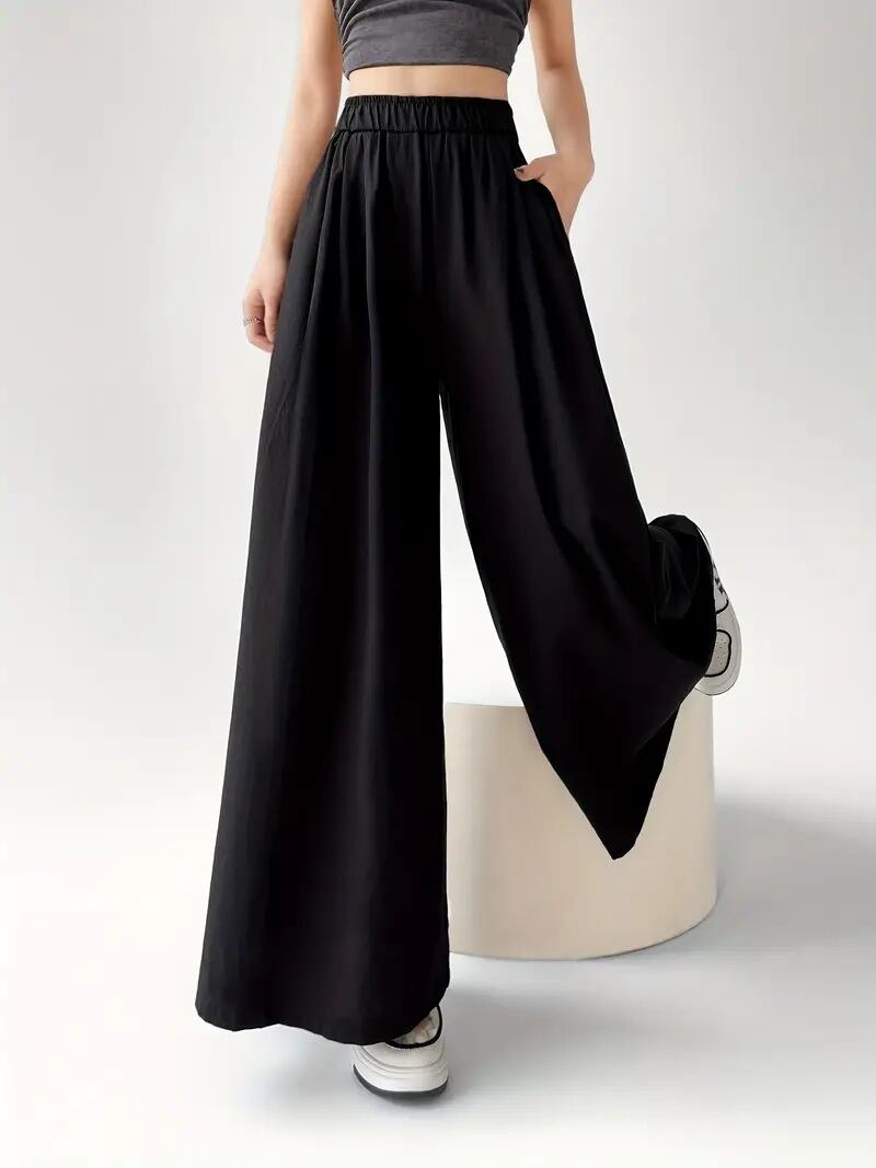【送料無料】レディース ハイウエスト ワイドレッグパンツ - ノンストレッチ エレガント ブラック トラウザー、カジュアル&フォーマルに最適 9分の1丈 洗濯機対応 透けないボトムス リラックスフィット 簡単お手入れ 衣類 K02446