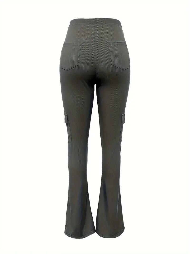 【送料無料】無地フレアレッグパンツ、カジュアルハイウエストリブパンツ、春夏用、婦人服 K02472