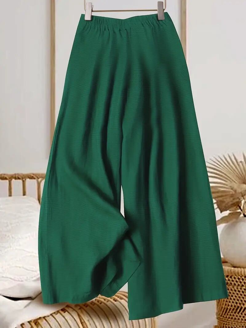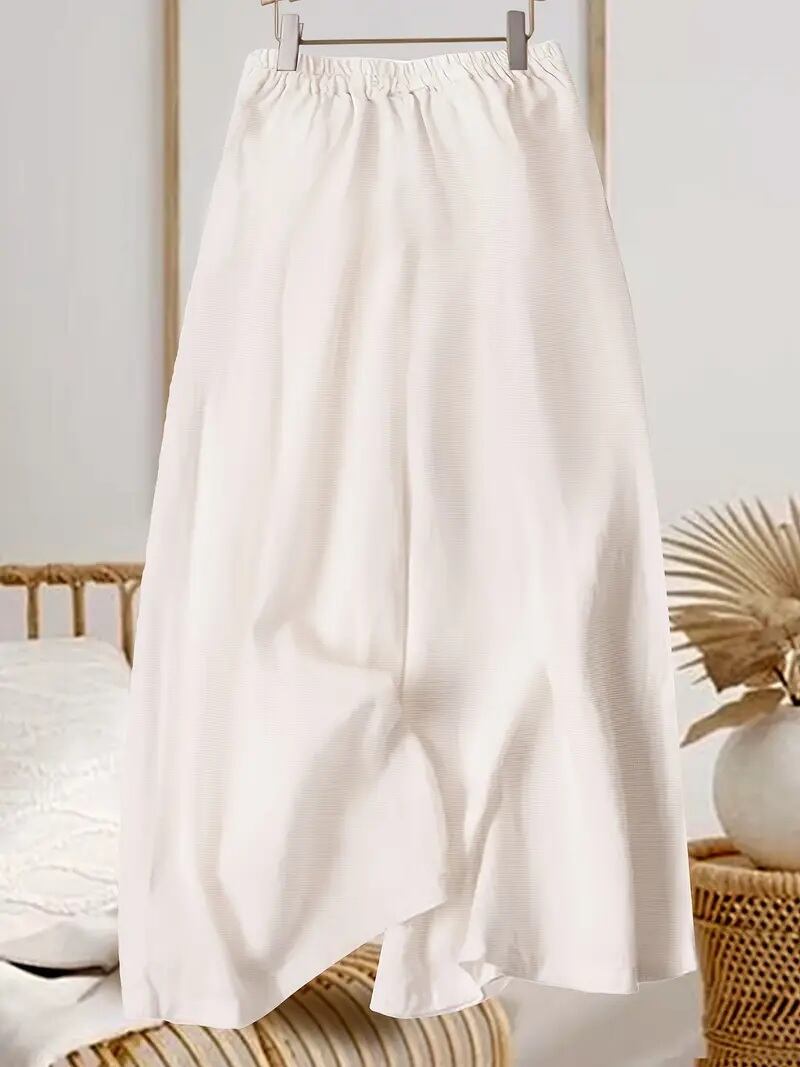 【送料無料】レディース レトロハイウエストワイドレッグスカートパンツ - 軽量通気性リネン、九分丈ポケット付き、春夏秋用リラックスフィット、カジュアルからセミフォーマルウェア、流れるシルエットの夏ファッション|高品質仕上げ K02493