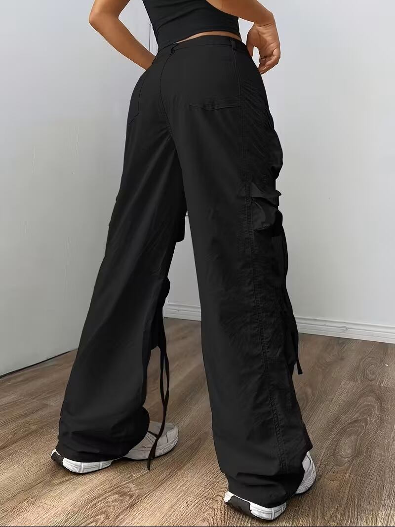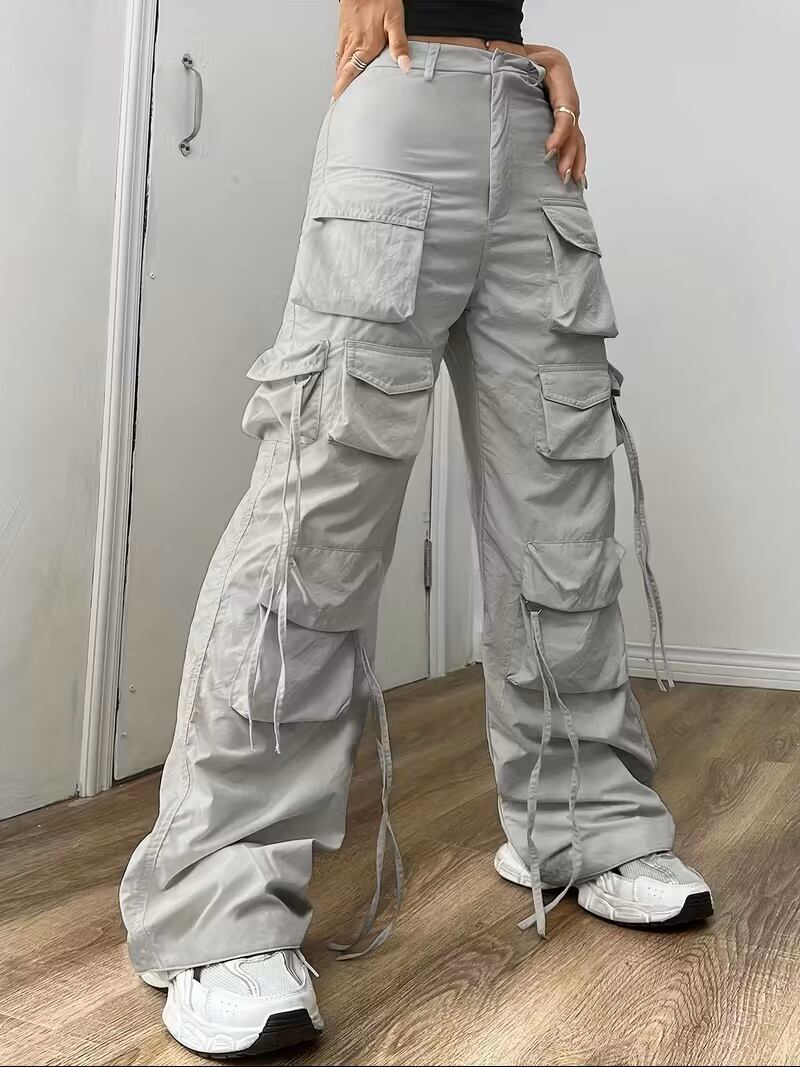 エフォートレスなスタイルを実現するレディース ハイウエスト ワイドレッグ カーゴパンツが登場しました!ゴムウエストバンドと複数のポケットを備えたこのパンツは、Y2K Kpop ストリートウェアスタイルを取り入れたルーズフィットデザインが特徴です。ライトグレーのカラーが、どんなコーディネートにも合わせやすく、普段着やカジュアルなお出かけに最適です。