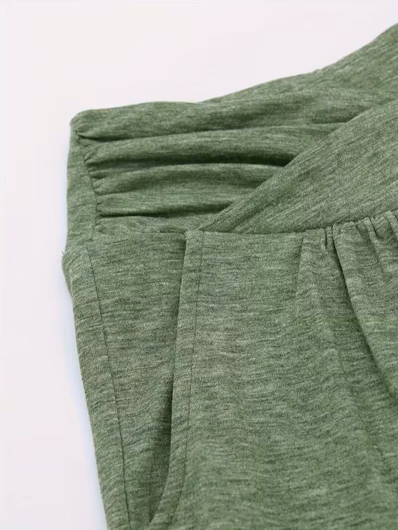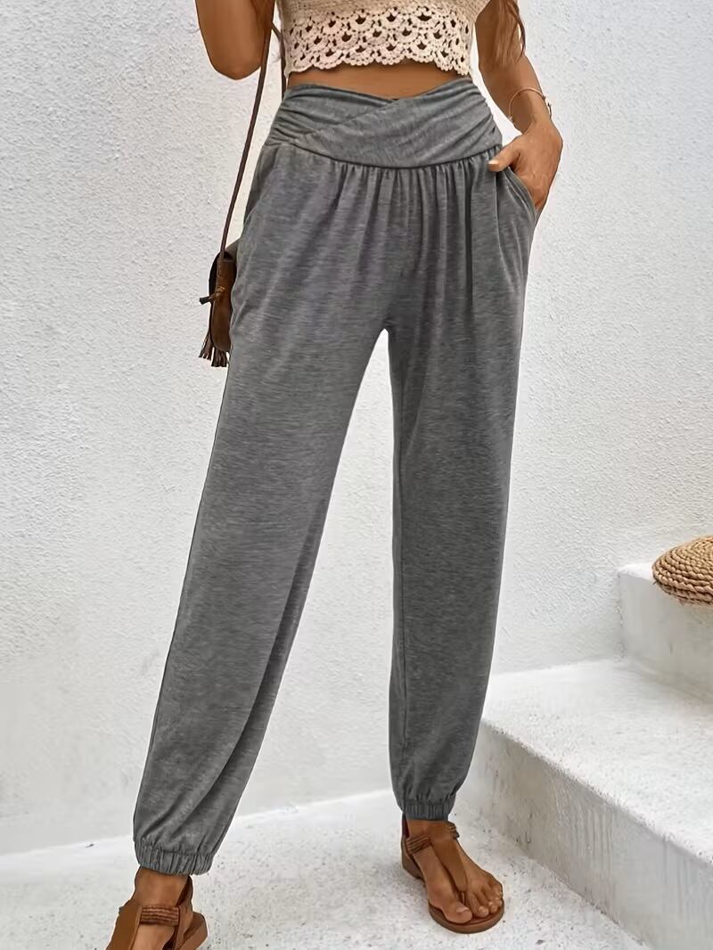 デイリーからビジネスシーンまで幅広く活躍するレディース エレガント クロスオーバーディテール ワイドレッグパンツが新登場!柔らかな生地で快適なフィット感を実現し、ゴムウエストによって体型を気にせず楽に着用できます。シンプルなソリッドカラーは、カジュアルにもフォーマルにも最適で、ポケット付きで実用性も抜群です。