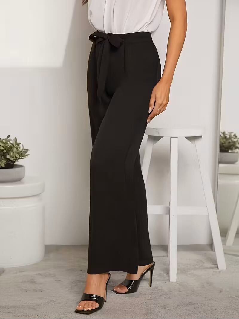 【送料無料】ソリッドボウフロントストレートレッグパンツ、ヴィンテージハイウエストパンツ、女性用衣料品 K02555