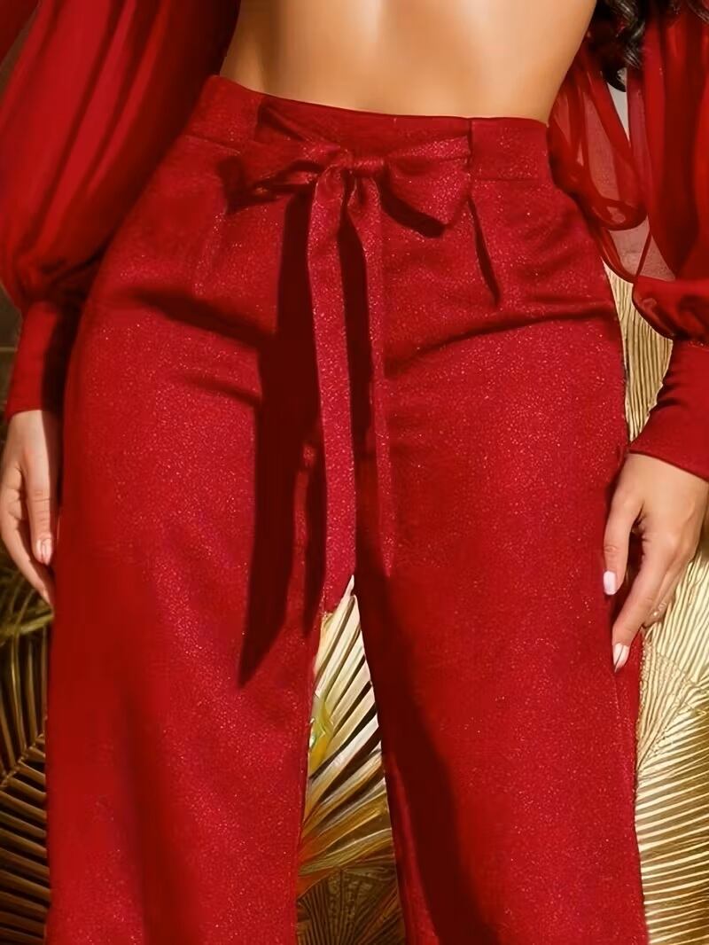 トレンドを意識したデザインと快適さを兼ね備えた、ソリッドボウフロントストレートレッグパンツが登場です!ヴィンテージ感溢れるハイウエストスタイルは、脚長効果を実現し、あらゆるシーンで活躍します。柔らかくて心地よい素材感は、デイリーから特別な日まで、多様なコーディネートにマッチします。シンプルで洗練されたルックスが特徴で、どんなトップスとも相性抜群です。