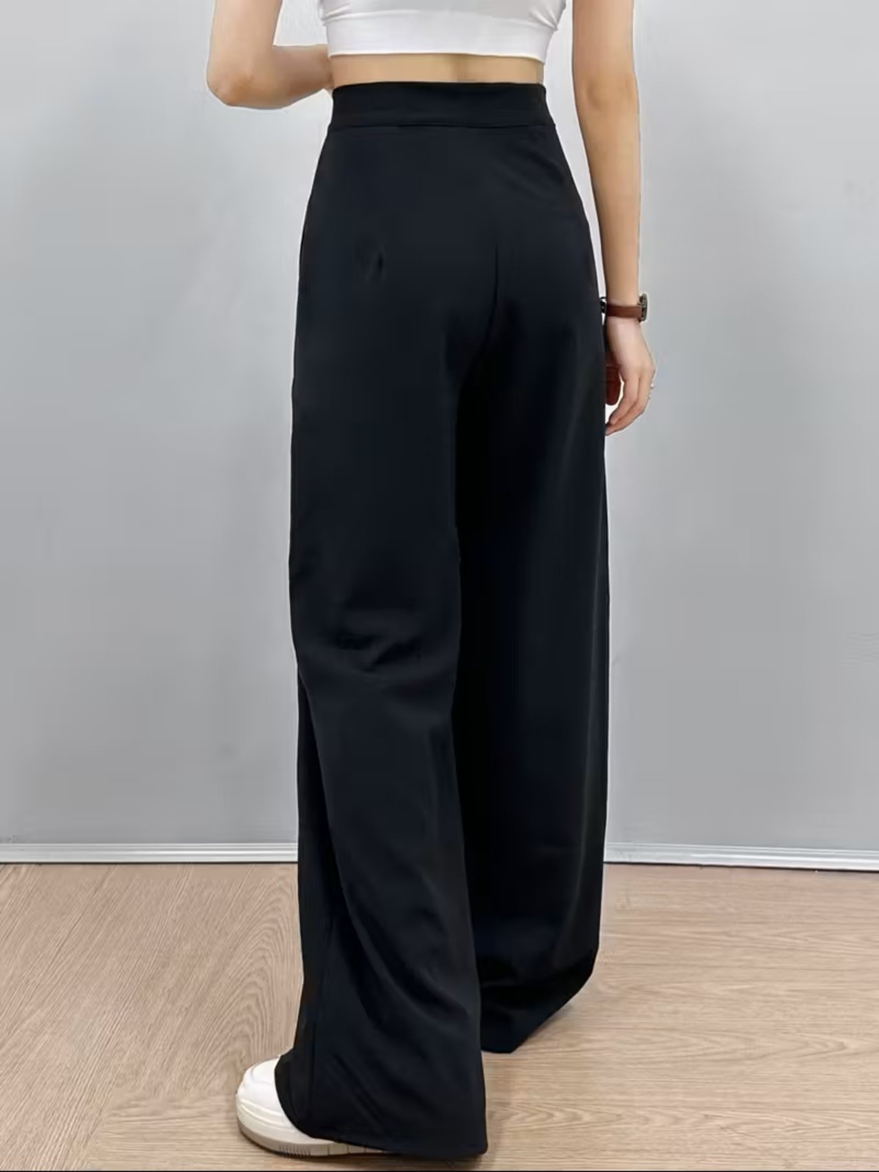 シックで洗練された印象を与えるレディース無地ストレートレッグパンツ。春夏秋にぴったりのハイウエスト設計で、シンプルながらスタイリッシュなコーディネートが実現できるアイテムです。