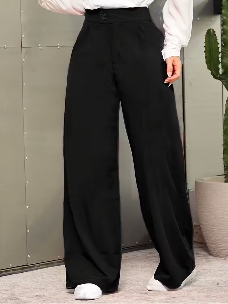 【送料無料】レディース シックな無地ストレートレッグパンツ - ハイウエスト、ボタンデタイル、快適でスタイリッシュなカジュアルまたはオフィスウェア、春/夏/秋に最適なハイウエストレギンス K02562