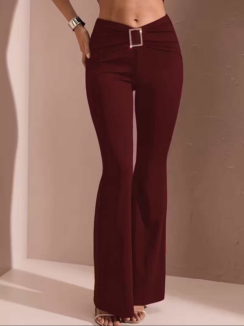 【送料無料】女性用エレガントな無地フラーレッグパンツ、ポリエステル93%、エラスタン7%、ラストーンデタール、ニット生地、オールシーズンファッションベルボトム、スクエアダイヤモンドエンボスメント付き K02564