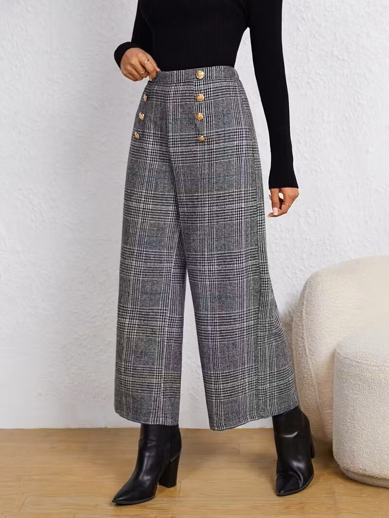 エレガントなカジュアルスタイルを演出する、チェック柄のレディースカプリパンツです。ハイウエストデザインが魅力的で、これからの季節にぴったりな一着。柔らかな生地を使用しており、心地よいフィット感を実現しています。脚を美しく見せるシルエットが特徴で、普段使いからお出かけまで幅広く活躍するアイテムです。