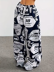 【送料無料】女性用 Y2K スタイル トラックパンツ ""プリント - ブラック、ワイドレッグ、オールシーズン カジュアルパンツ ポケット付き、成人、カジュアルウェア | グラフィックプリントパンツ | 快適フィット K02570