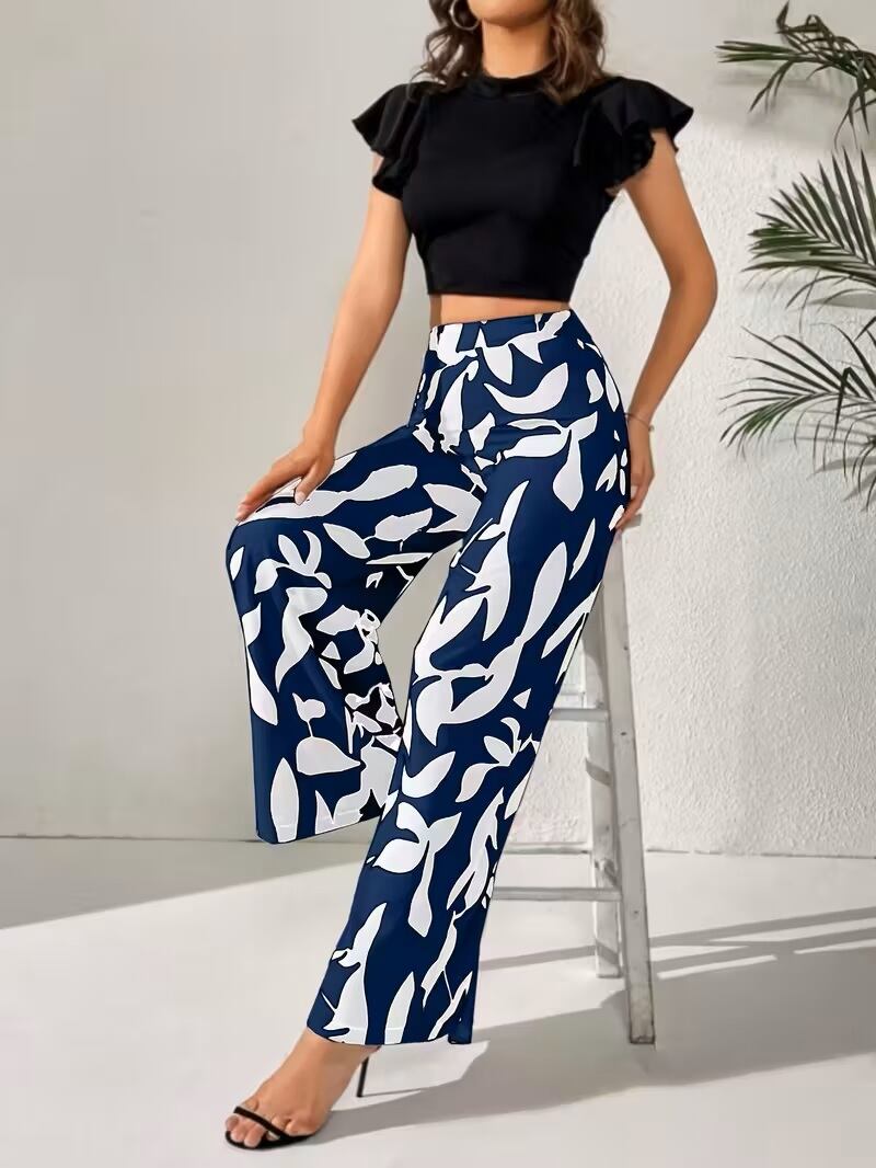 【送料無料】女性用スタイリッシュなハイウエストレオパードプリントワイドレッグパンツ - ソフトピンク&ブラックポリエステル、軽量で快適、カジュアルまたはセミフォーマルの外出に最適、レオパードプリントパンツ K02572