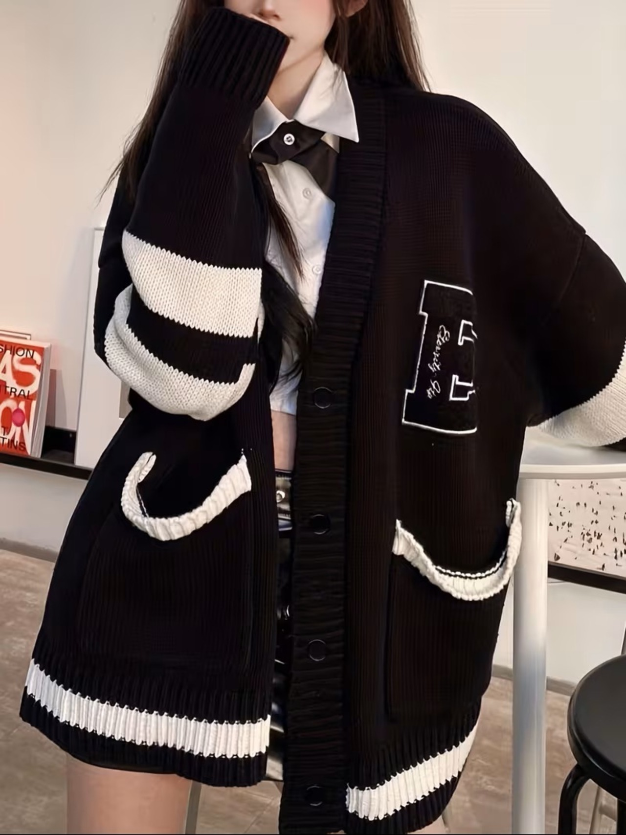 【送料無料】Eパターンボタンアップカーディガン プレッピー 長袖 ポケット付きカーディガン 秋冬用 レディースウェア K02599
