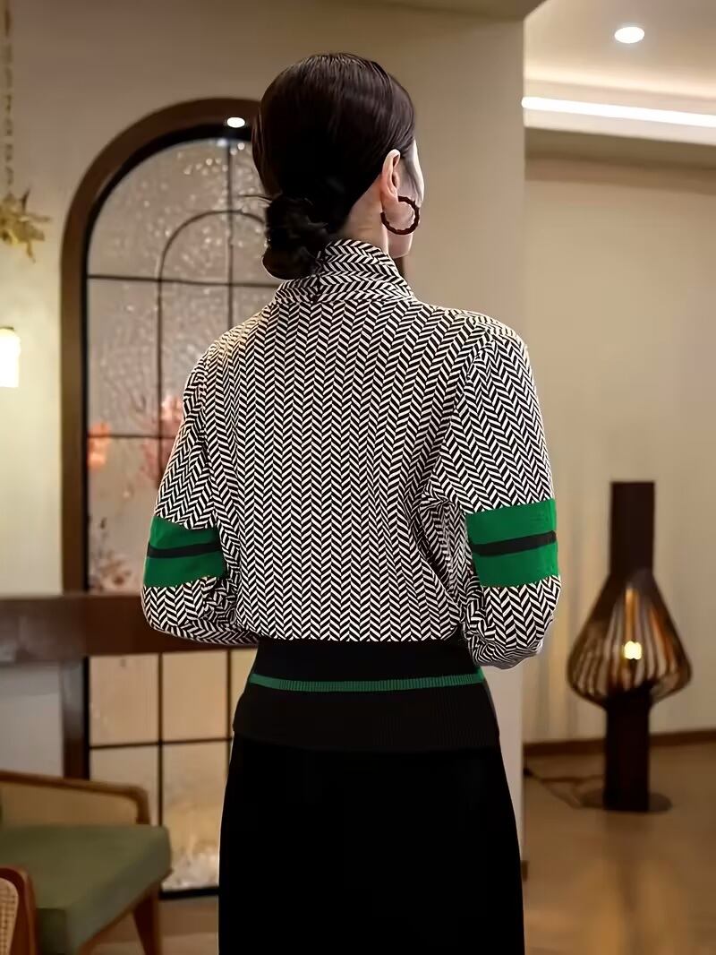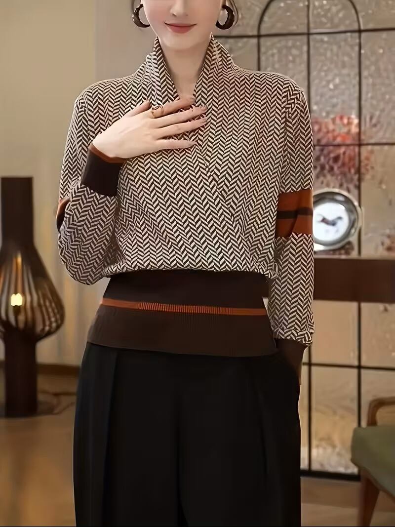 秋冬にぴったりのエレガントなバットウィングスリーブVネックセーターが登場!シックなカラーブロックデザインのこのセーターは、普段使いから特別な日まで幅広く活躍するアイテムです。