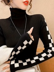【送料無料】秋冬にぴったりのカジュアルなロングスリーブプルオーバースウェット、プレイド柄タートルネックセーター、女性用の服 K02619