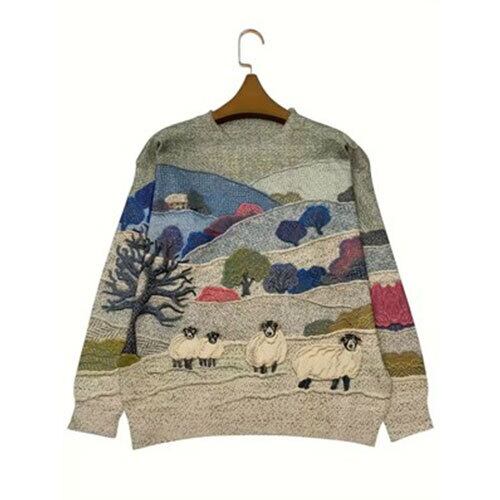 【送料無料】レディース 軽量セーター - 羊柄プリント 長袖 ラウンドネック プルオーバー 日常&フォーマル着用に最適 柔らかくてかわいいデザイン 季節感あふれるファッション 自然インスパイアドデザイン 快適フィット スタイリッシュニットウェア カジュアル着心地 耐久性抜群 ファッションホビー向け K02638 | monohouse