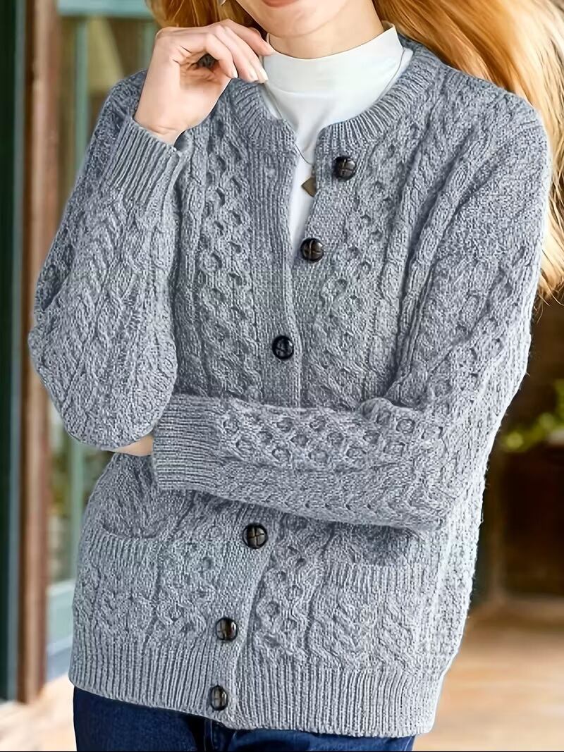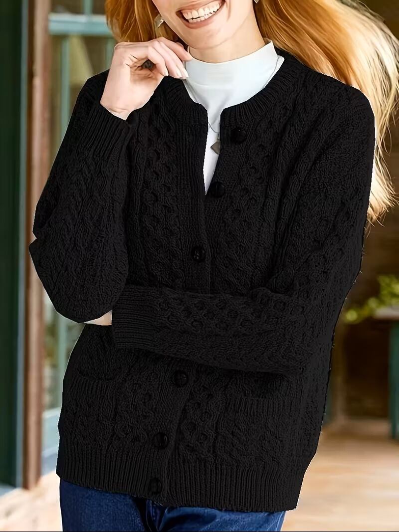 洗練された幾何学模様が特徴のレディースカジュアルカーディガンセーターが登場!マルーンカラーの袖とラウンドネックが、デイリーコーデにスタイリッシュなアクセントを加えます。ボタンフロントデザインで、レイヤードスタイルも自由自在。秋冬のシーズンにぴったりな快適な着心地を実現した、可愛いセーターです。テクスチャデザインが光るこの一着は、耐久性のある構造で、長くご愛用いただけること間違いなし。