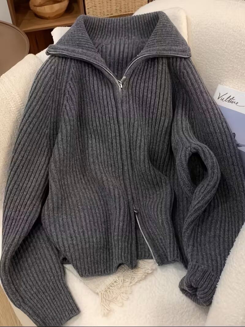 秋冬のコーディネートに最適な【レディース】エレガントなグレーカーディガンが新登場しました!ソフトな素材感と長袖オープンフロントデザインが特徴で、ジッパー付きのスタイルが機能性も兼ね備えています。ルーズフィットのシルエットは、リラックスした着心地を実現し、普段使いやフォーマルなシーンまで幅広く活躍できる一着です。