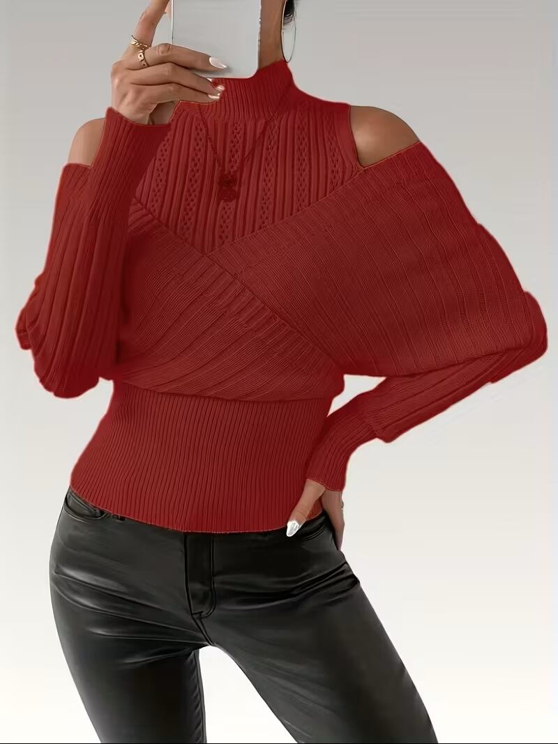 【送料無料】レディース エレガント リブ ハイネック セーター シースルーブースレーブ - ストレッチ スリムフィット 長袖トップス 春/秋向け、無地 カジュアル シック プルオーバー カジュアルウェア、春秋アパレル、洗練されたデザイン、高弾性生地 K02686