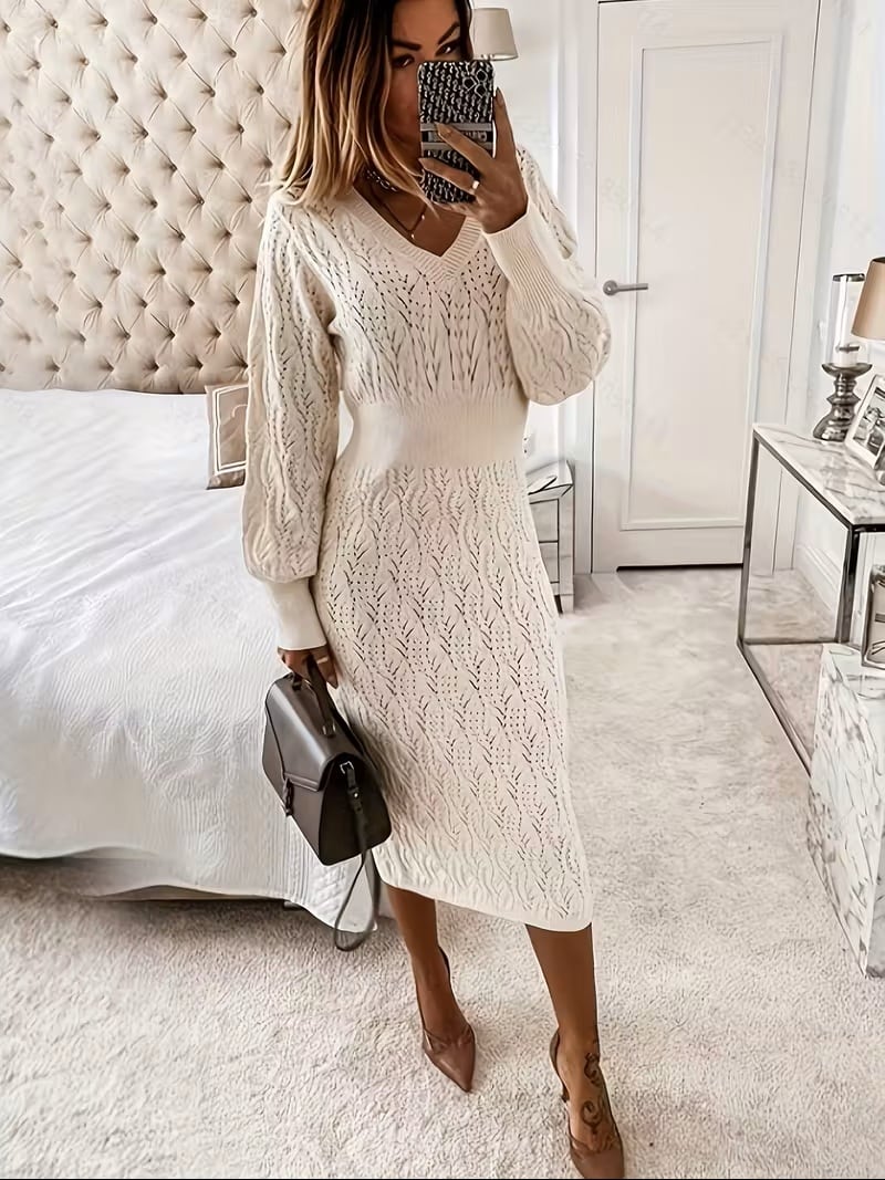エレガントなカットアウトディテールが魅力のレディースVネックドレスは、秋と冬のシーズンにぴったりな一着です。長袖、ミドル丈のデザインが、スタイリッシュでありながらも暖かさを提供し、ショッピングやお祭りなどのイベントでの活躍が期待できます。ソリッドブラウンの落ち着いた色合いは、どんなシーンにもマッチし、コーディネートの幅を広げます。女性らしいシルエットを美しく際立たせるデザインです。