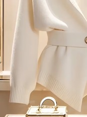 レディースホワイトVネック調節可能ベルト付きカーディガンは、春秋の季節にぴったりなエレガントなカジュアルプルオーバーです。ソフトなロングスリーブデザインと、ゴールドバックルディテールが魅力的で、どんなスタイルにも合わせやすい一着。街歩きや週末のお出かけにぴったりのアイテムです。調節可能なベルトが、シルエットを引き立てる効果を発揮し、あなたの美しさを際立たせます!