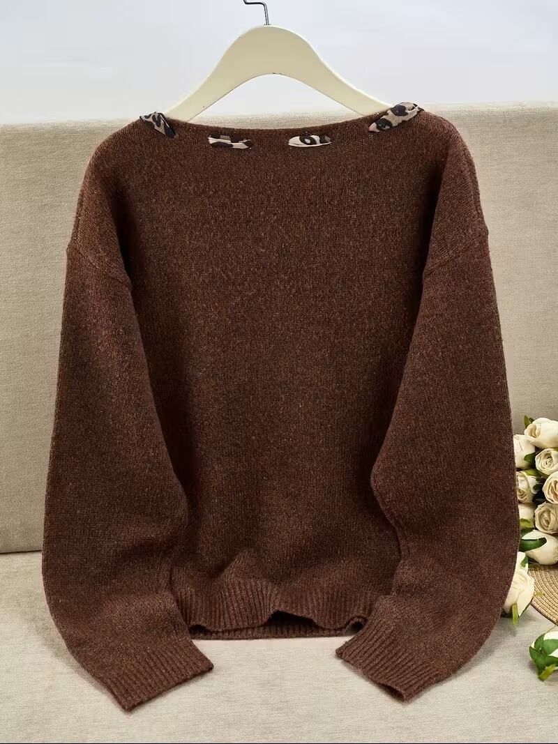 レディース 韓国風 レオパードプリント ボウアクセント セーターは、オールシーズン楽しめるエレガントなアイテムです。ホワイトカラーにあしらわれたレオパードプリントとボウタイ風のデザインが、洗練された印象を与え、コーディネートを引き立てます!ミディアムストレッチの素材は、ほどよいフィット感を保ちながらも動きやすく、カジュアルさとエレガントさを兼ね備えたこれ一着で、さまざまなシーンに対応できます。