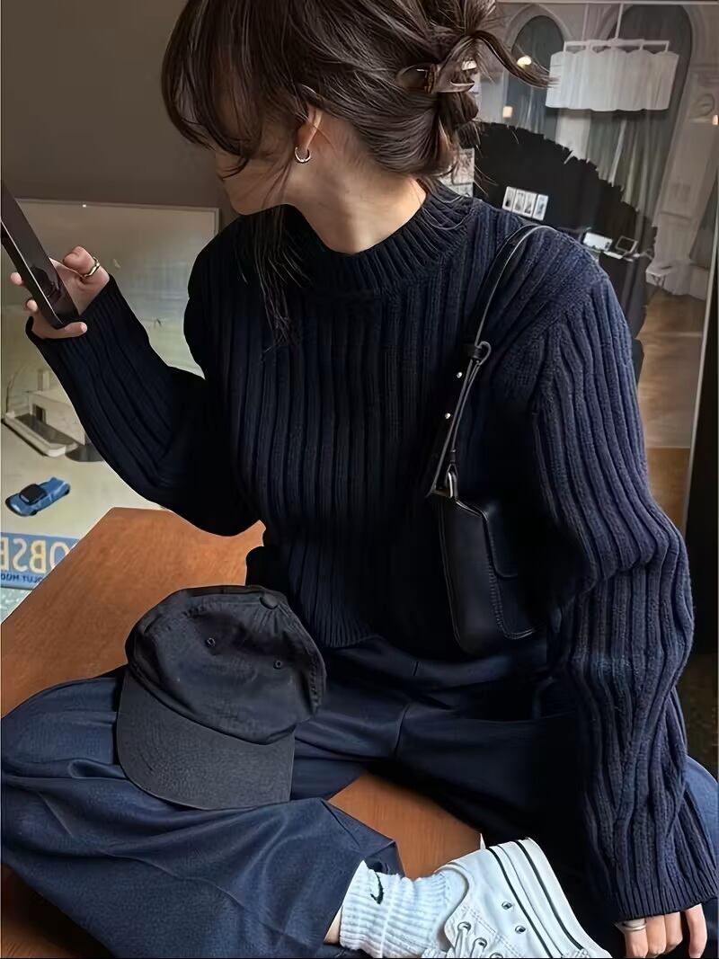 レディース エレガントなネイビーブルーセーターは、全シーズンに対応可能な快適な一枚です。ソフトストレッチ素材を使用しており、柔らかな肌触りを実現。ラウンドネックのデザインは首元をすっきり見せ、シンプルながらも洗練された印象を与えます。色鮮やかなネイビーブルーは、カジュアルからフォーマルまで幅広く対応するため、様々なシーンで活躍すること間違いなしです。