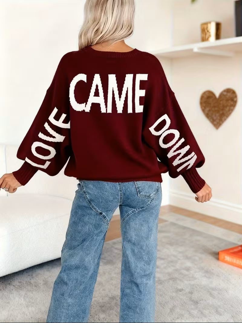 【送料無料】秋冬新作 ニッチカーディガン レディース レイジースタイル セータートップ ワインレッド&コーヒーカラー レタープリント ラウンドネック プルオーバー デザイナーパターン カジュアルエレガント 冬トップ アーバンコミュート ベーシック バーサタイルスタイル おしゃれ カジュアルバケーションルック デザイナーパターン ニッチカーディガン ハロウィン クリスマス バレンタインデー ホリデーアウトフィット インスタグラムスタイル 韓国で人気 デートギフト レディースファッション YTD K02831 | monohouse