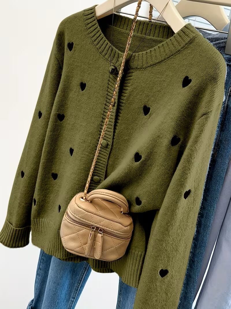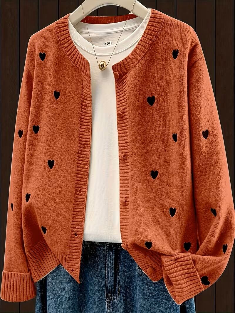 【送料無料】レディース エレガント ハンドエンブロイド ハートカラー ブレザーセータージャケット - 冬用 暖かい ラペルカラー カーディガンコート 手洗い可能 ラウンドネック 秋冬アウター (カジュアル&フォーマルイベント用) K02840 | monohouse