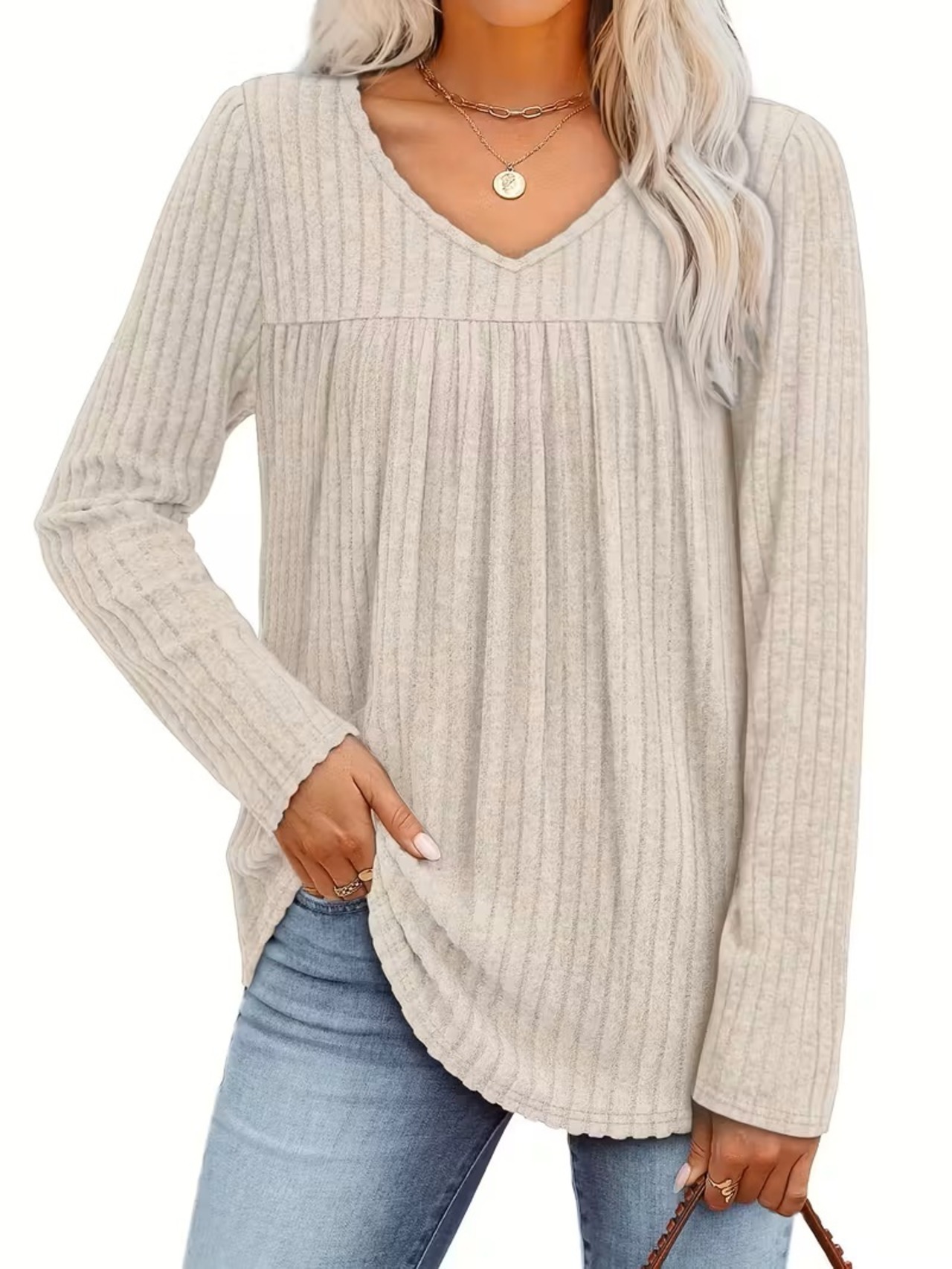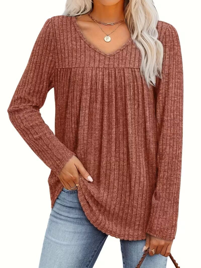 【送料無料】レディース 軽量Vネック フリルスリーブセーター - カジュアルシック 長袖プルオーバー ジーンズ&スカートにぴったり オールシーズン レイヤリングトップ 洗濯機対応 K02852 | monohouse