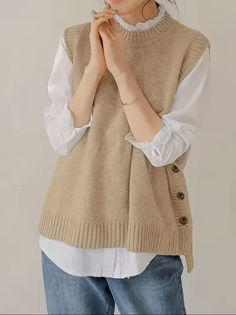 カジュアルスタイルを楽しむためにデザインされた女性用ハイロウヘムボタンダウンセーターが登場しました!このセーターは、オレンジ色の布地の厚みが36mmあり、ラウンドネックデザインと袖なしのスタイルが特徴です。全季節に対応したアイテムで、インナーとしても、ひとつのファッションアイテムとしても活躍します。シンプルでマルチなコーディネートが可能なため、普段使いからお出かけまで幅広いシーンで活用できます。