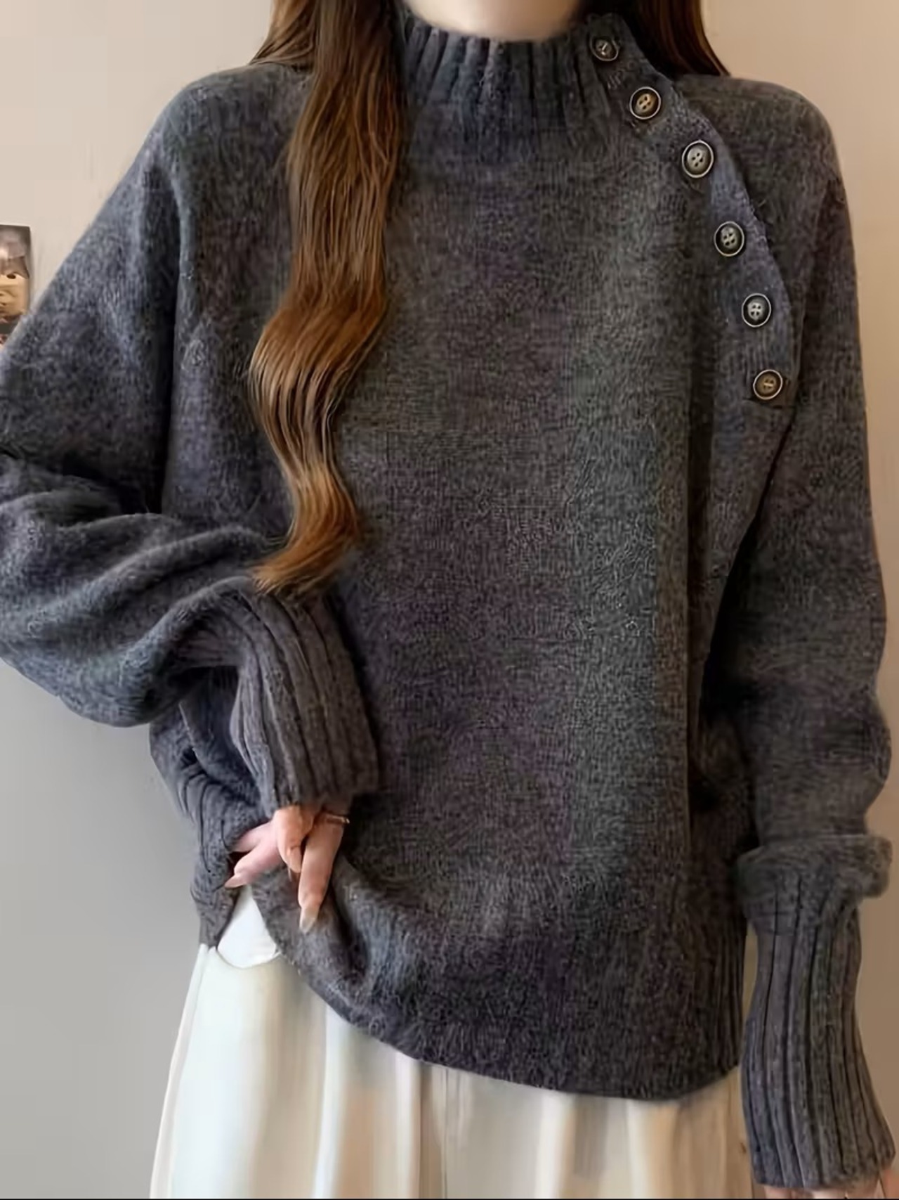 イブフィンのレディース冬用カラーセーターコートが登場しました!ふんわりとした厚手の素材が心地よい暖かさを提供し、冬の寒さからしっかり守ってくれます。ボタンフロントのデザインはエレガントで、カジュアルにもフォーマルにも合わせやすいアイテムです。カラーはシックなグレーで、どんなコーディネートにもマッチします。ダブルボタン留めのスタイルは、シンプルながらも洗練された印象を与え、上品さを演出します。秋冬のおしゃれを楽しむための必須アイテムです!