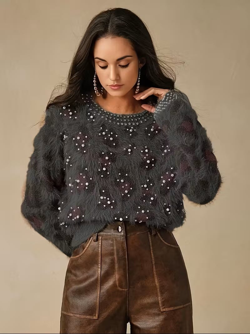 秋冬向けにぴったりな、カジュアルでありながらエレガントな「レオパードプリント ルーズ プルオーバーセーター」が登場しました!ラウンドネックと長袖のデザインが、フレッシュで女性らしい印象を与えます。ダイヤモンドやバブルビーズのエンベリッシュメントが施されたこのセーターは、日常使いからパーティー、デート、バケーションまで幅広いシーンで活躍します。ふわふわとしたラグジュアリーな肌触りで、快適さと暖かさを両立させた一枚です。