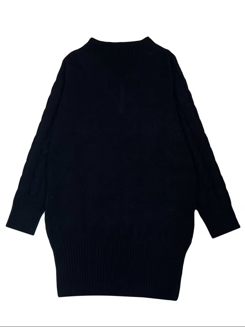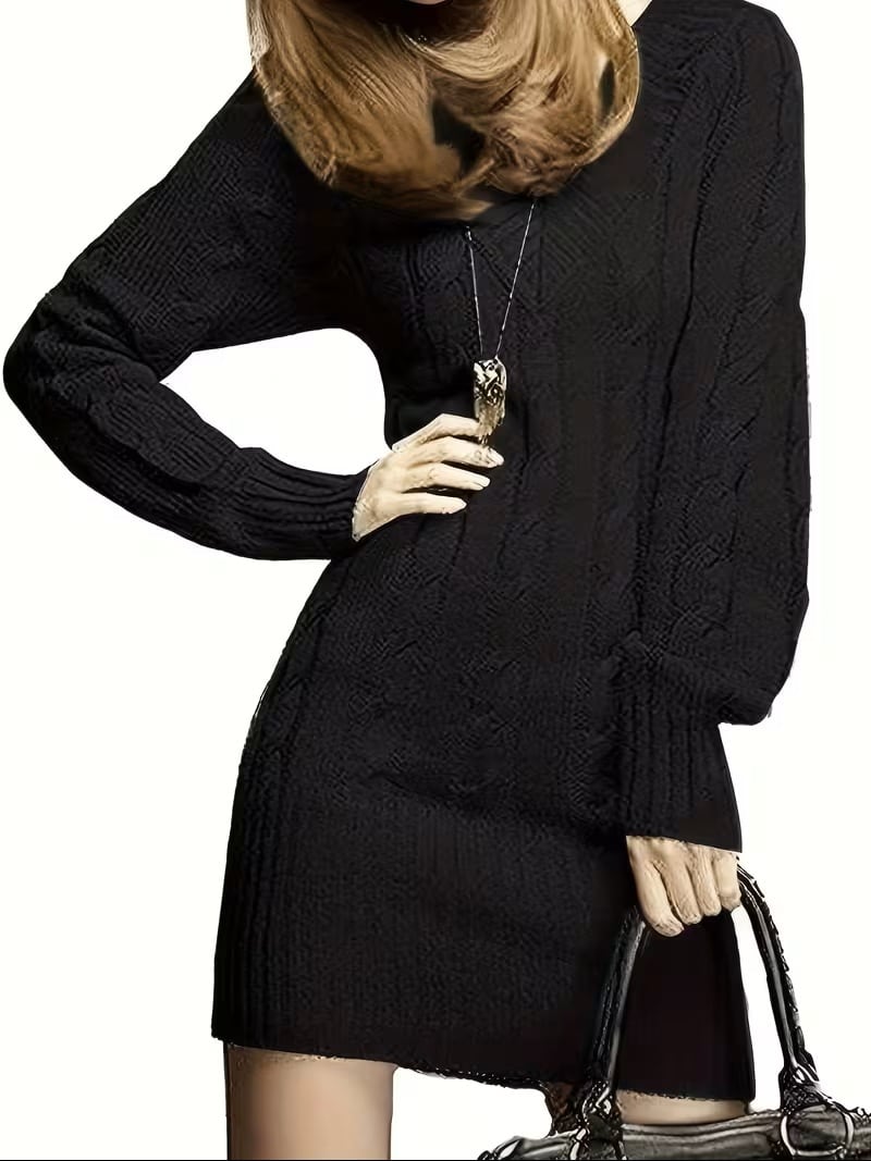 【送料無料】女性用エレガントVネックチャンキーセータードレス - ミドル丈Xシルエット無地プルオーバー、秋冬向け、手洗い/ドライクリーニング、フォーマルクールドウェア、耐久性のある生地 K02880 | monohouse