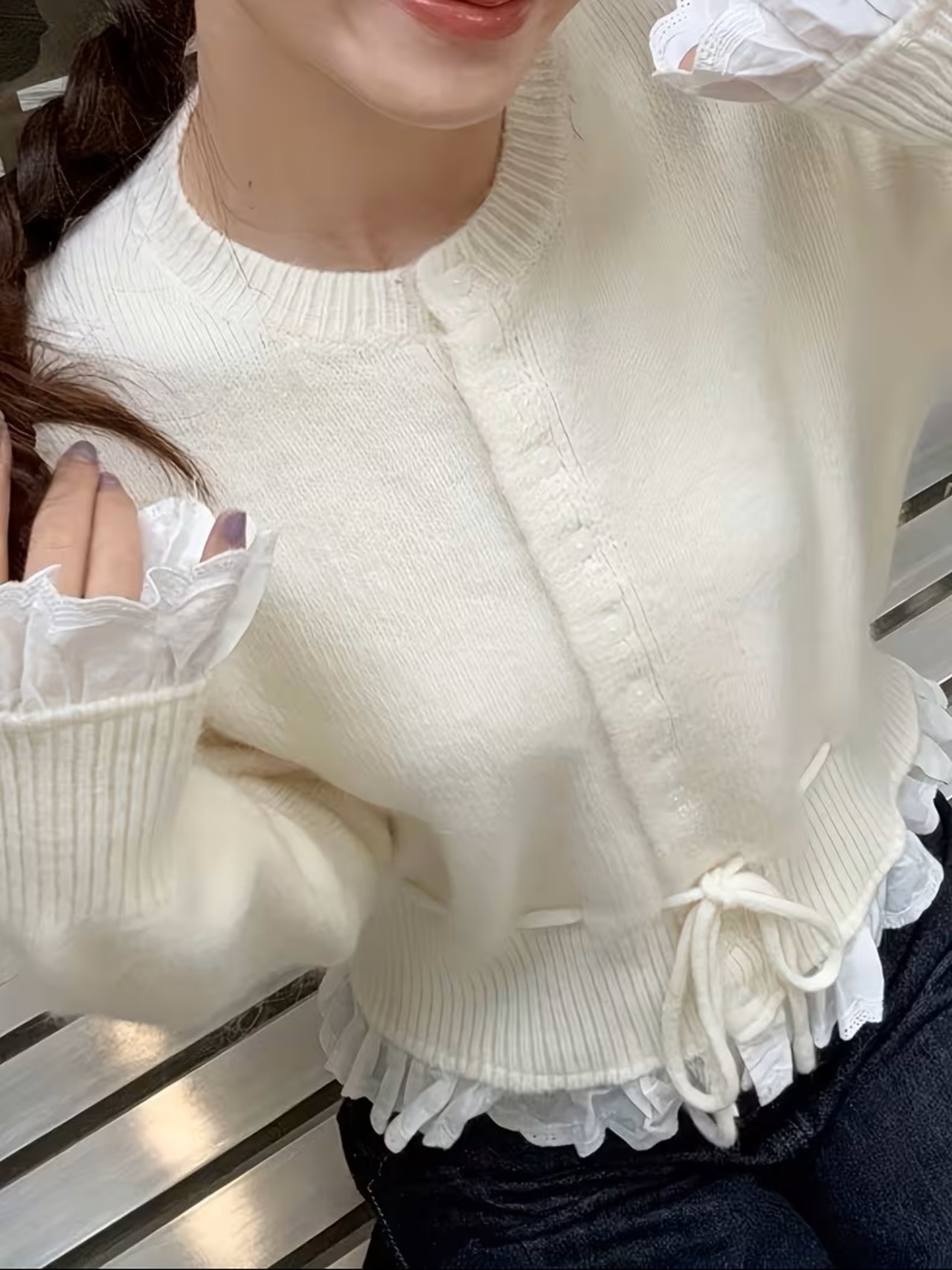 華やかなレッドレーストリムのフローラルペタルスリーブ&ボウディテールを施したカーディガンです。オープンフロントデザインが女性らしいシルエットを引き立て、全シーズンでの着用が可能な一枚。柔らかな素材感が快適さを提供しつつ、エレガントさも兼ね備えています。レイヤリングがしやすく、シンプルなスタイルからシックなコーディネートまで、幅広く活躍するアイテムです。デイリーユースでもおしゃれに決まり、特別な日にもぴったりのカーディガンです。