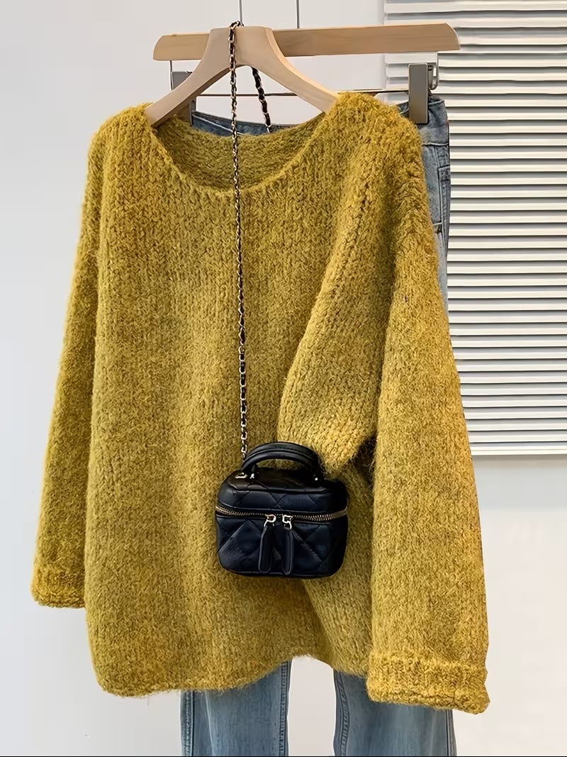 【送料無料】レディース 冬用 暖かい ゆったりストライプセーター - エレガントな長袖ブラウス、ラウンドネック カジュアル&ドレッシー トップス、ミディアムストレッチ 快適な秋冬コーデ (かさばらない) K02912 | monohouse
