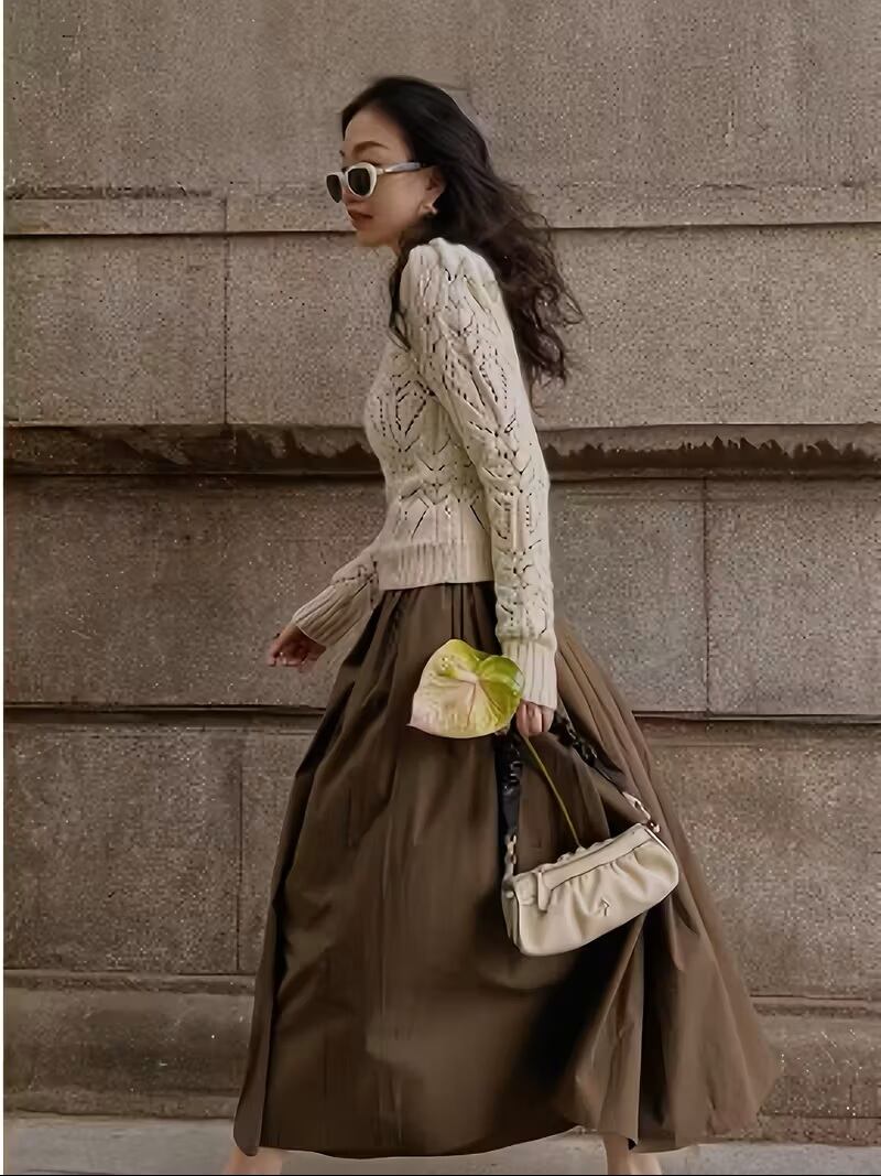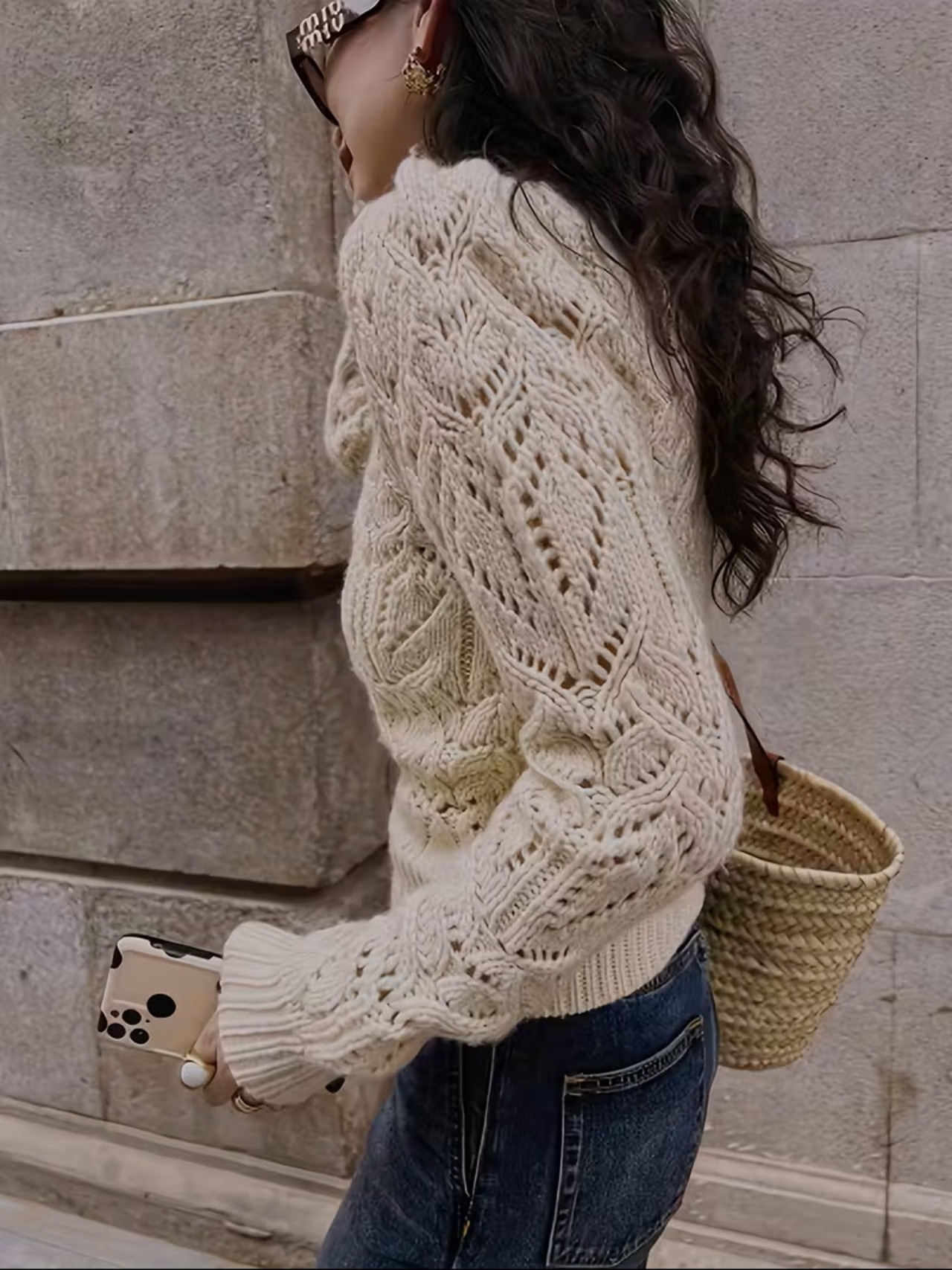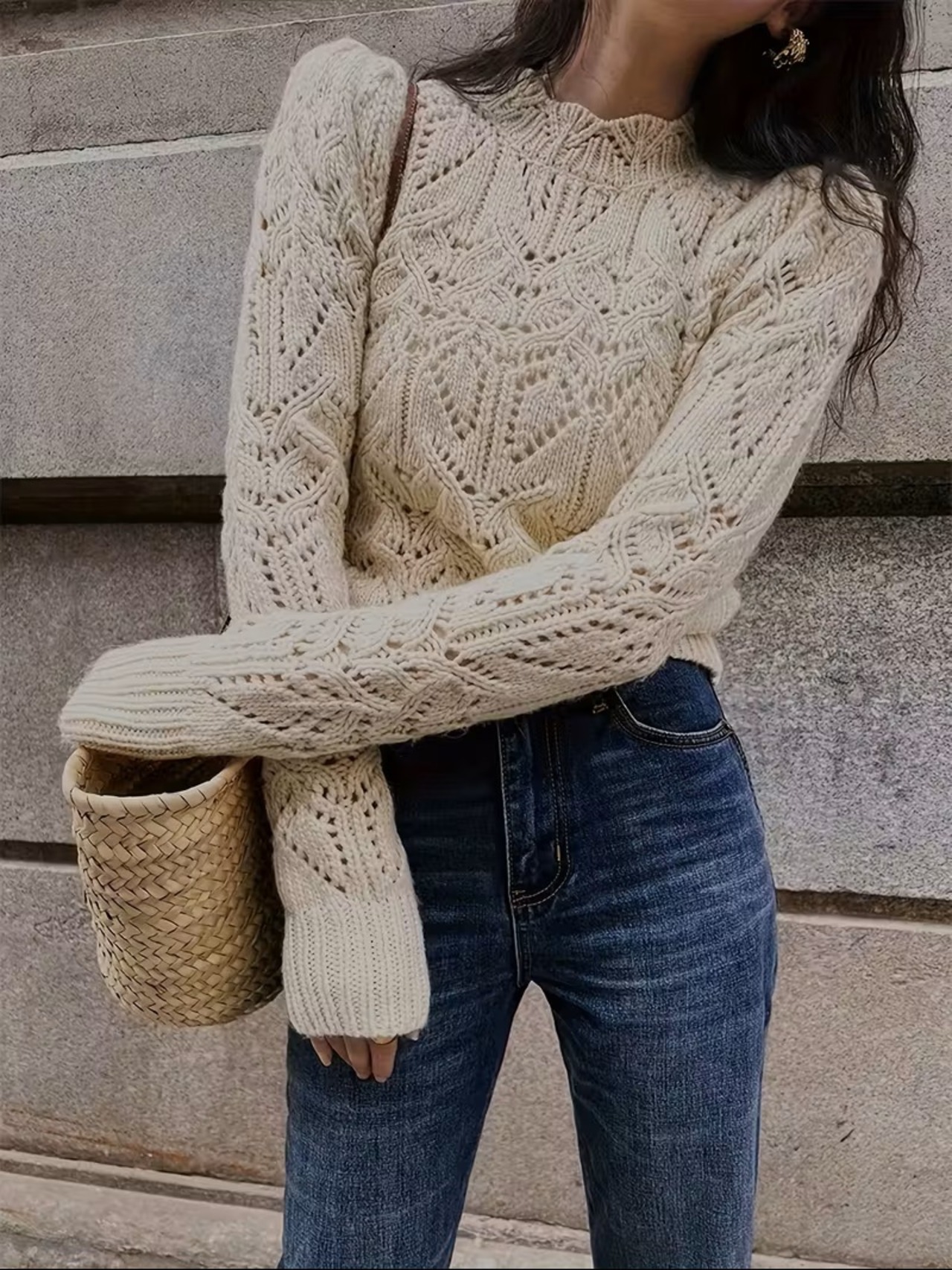 【送料無料】レディース レトロ セミシアーケーブルセーター - レース風カットアウト付き、ラウンドネック 軽量春夏秋用プルオーバー、多目的カジュアルからドレスアップまで、キュートなセーターズ、季節のワードローブ必須アイテム、繊細ニットウェア、おしゃれな編み物、カジュアルスタイル、秋のレイヤリング、手洗いのみ、シースルーニットウェア、トレンディな服装 K02913 | monohouse