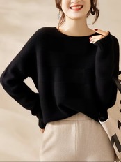 【送料無料】レディース ソフトセーター - ラウンドネック エレガント プルオーバー セーター、オールシーズン レイヤリング必須アイテム ディープパープル/ブラック/ホワイト/グレー/ベージュ/ブルー/レッド - シックなオフィス&日常着用 女性向け、多機能ニットトップ、幾何学模様、リブ加工、カジュアルウェア、快適素材、クラシックニットウェア、おしゃれトップ、ファッション愛好家向け K02939 | monohouse