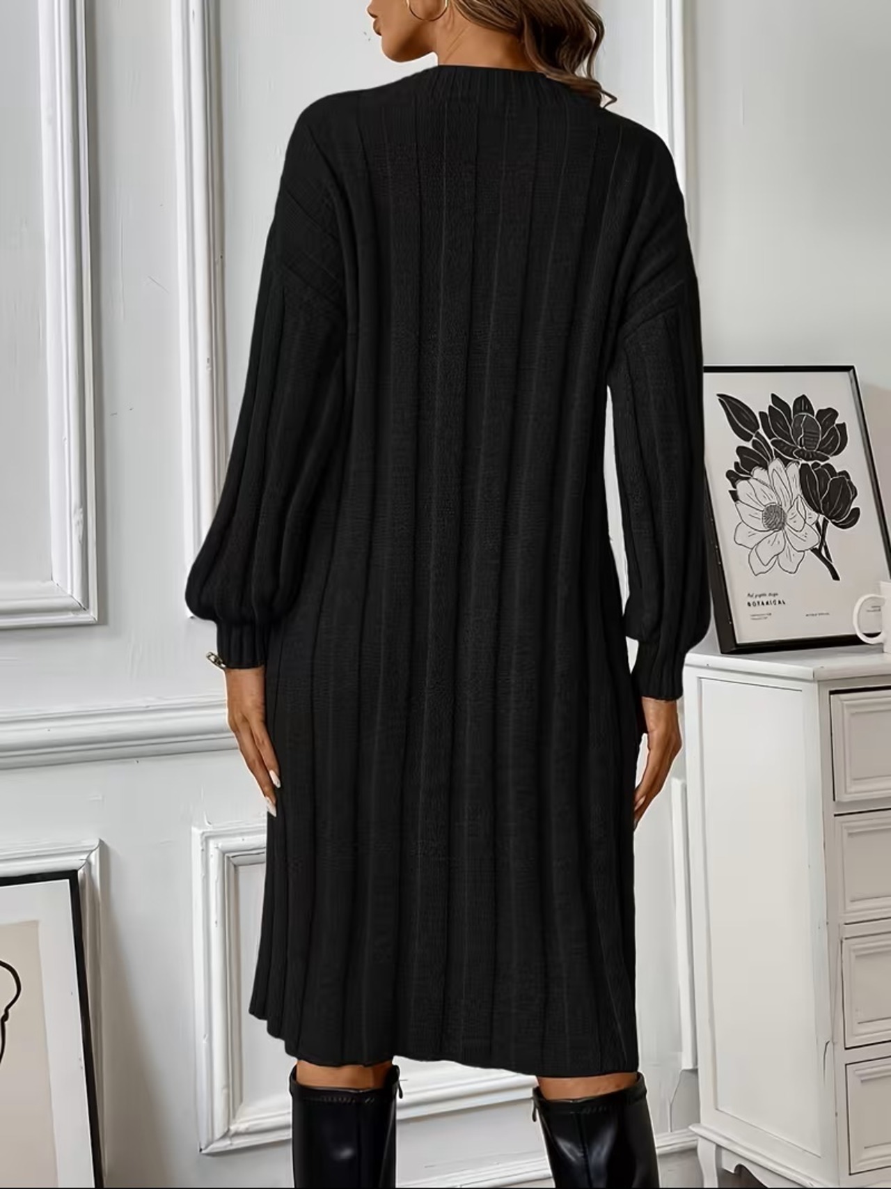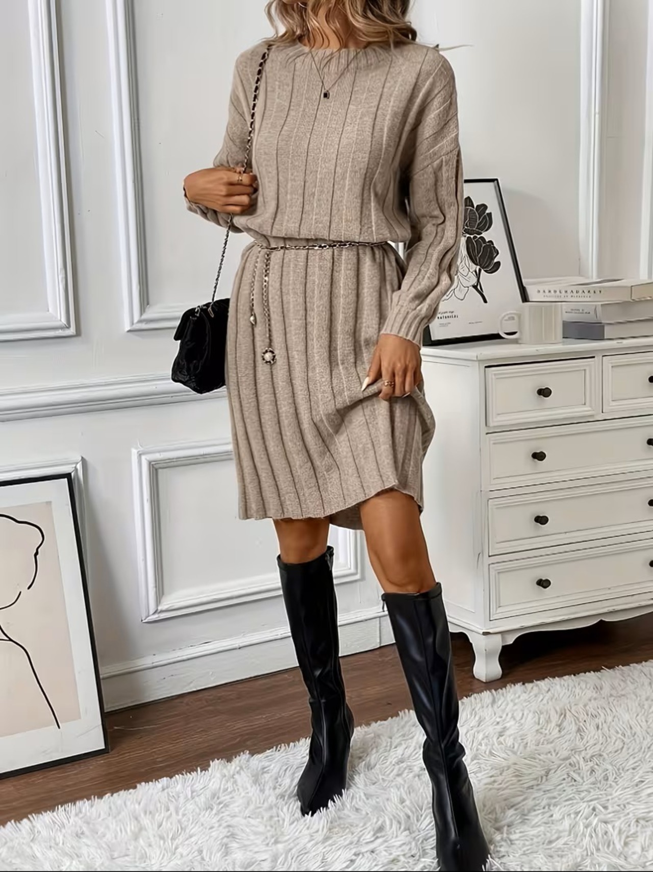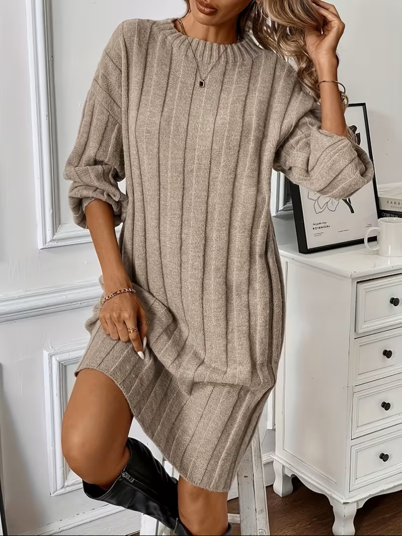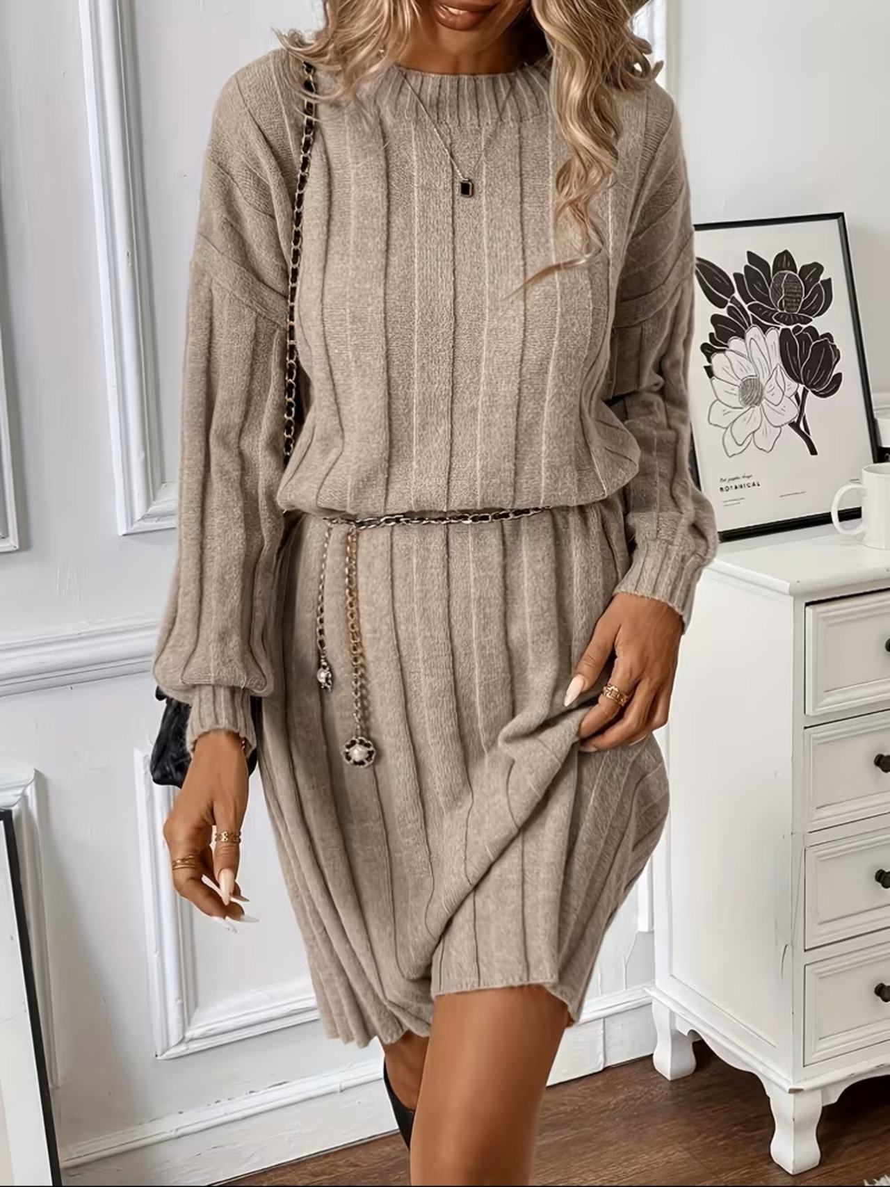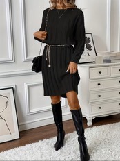 【送料無料】レディース エレガント 長袖 セーター ドレス - 無地 ラウンドネック カジュアル フォーマル 服装、オールシーズン 万能 ドレス 普段使い & 特別な機会に、万能 服、クラシック スタイル、高品質 ステッチ、スタイリッシュ 服装、オフィスウェア K02949 | monohouse