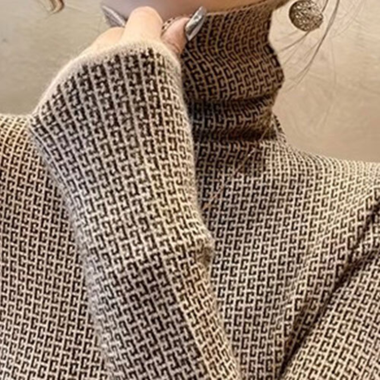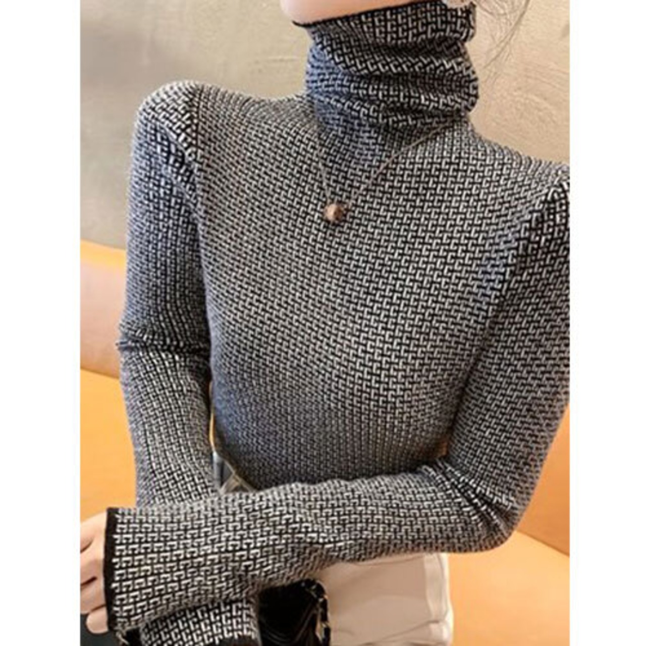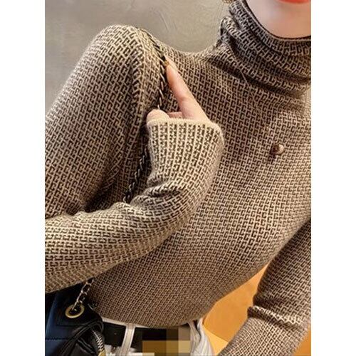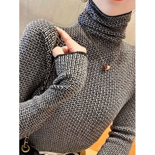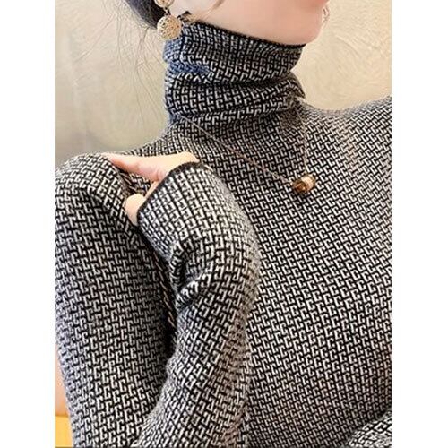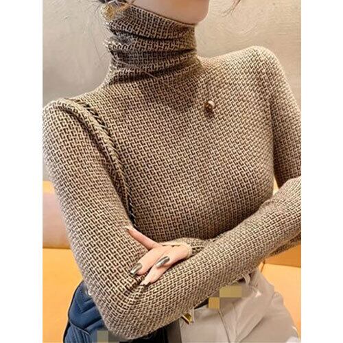 【送料無料】レディース バーガンディー ジオメトリックパターン ハイネック タートルネックセーター - 秋冬用 ソフトストレッチ プルオーバー、洗濯機可 エレガントでカジュアル&フォーマルウェア、クラシックな女性向けセーター、秋のファッション、上品なスタイル、快適フィット K02952 | monohouse